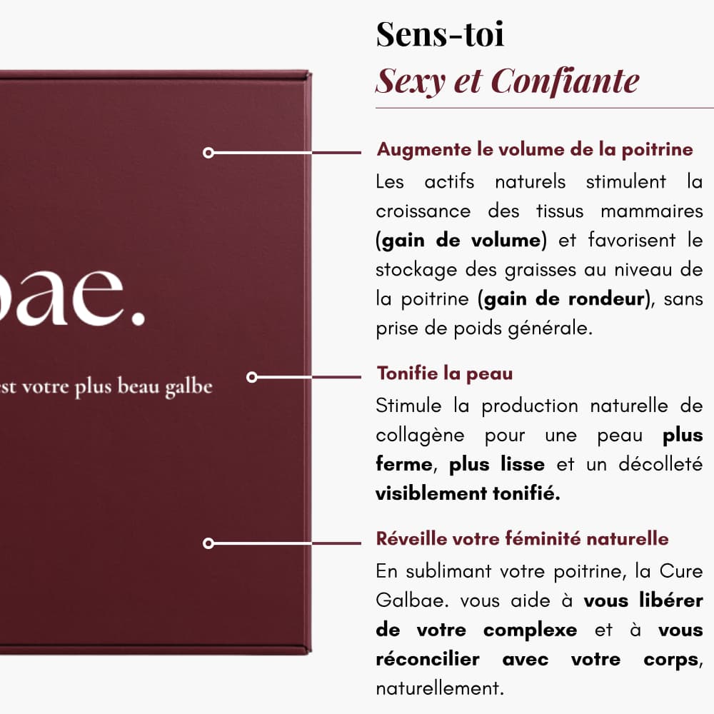Vous méritez de vous sentir bien dans votre peau. Avec la Cure Galbae., redécouvrez le plaisir d’aimer votre reflet — naturellement, sans effort, avec des résultats visibles et prouvés.
